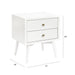 - MID-CENTURY MODERN NIGHTSTAND: Stylish 2-drawer nightstand is designed to sit next to a favorite recliner or in a bedroom.