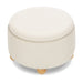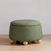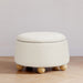 The Tuffet Storage Ottoman combines style and function with its plush upholstery and versatile design. Wooden ball feet add a distinctive touch while providing sturdy support, and the removable lid reveals a spacious interior for convenient storage. Perfect as a footrest, extra seating, or an elegant organizational solution.