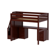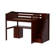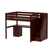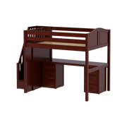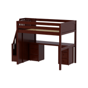 Maxtrix Full High Loft Bed with Stairs + Desk