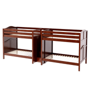 Our Full High Quadruple Bunk Bed is just that! Two full size high bunk beds connected by a staircase in the middle.