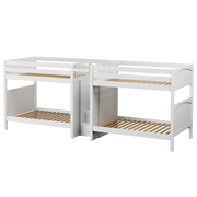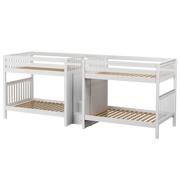 This Quadruple Bunk is two traditional Full High Bunk Beds connected by a staircase in the middle. Designed as a space-saving way to sleep four, it’s the perfect solution for a shared bedroom or vacation home. Added bonus, stairs double as drawers for built in storage!