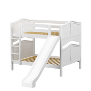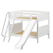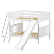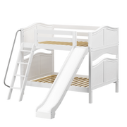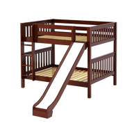 We added a slide to our best-selling style for the ultimate combination of fun and function. Full size = extra room for growing kids, sleepovers or snuggling with parents. Medium height bunk designed with more space between beds, but still safe enough little ones + fits average ceilings.