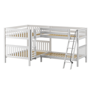 Our medium corner bunk is just that! Two medium bunk beds connected in a super functional “L” shape, designed to fit perfectly in your bedroom corner.