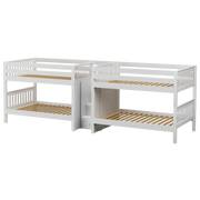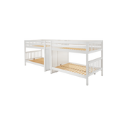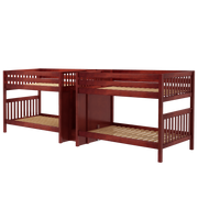 This Quadruple Bunk is two Full XL Bunk Beds connected by a staircase in the middle. Designed as a space-saving way to sleep four, it’s the perfect solution for a shared bedroom or vacation home. Added bonus, stairs double as drawers for built in storage.