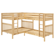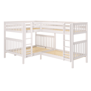 We combined two bunk beds to form an "L" shape that fits perfectly in a bedroom corner. Designed as a space-saving way to sleep four, it’s the perfect solution for a shared bedroom or vacation home. Easy-to-climb, solid wood ladders on each end for dual access points. Patented Rock Lock system keeps stacked beds super sturdy + secure.
