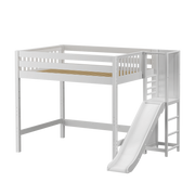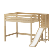Our new slide platform turns up the fun on a high loft! Platform doubles as entry way to top and is positioned at the bed end so slide starts further back, saving floor space. Queen size = extra room for growing children, sleepovers or snuggling with parents.