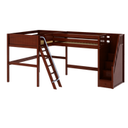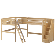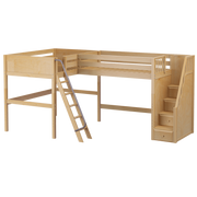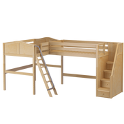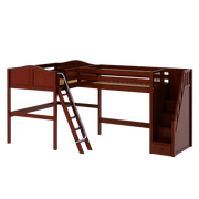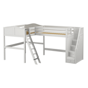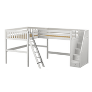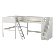 Maxtrix Twin Full High Corner Loft Bed with Ladder + Stairs - R
