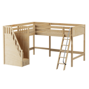Maxtrix Twin Full High Corner Loft Bed with Ladder + Stairs - L