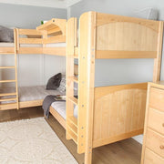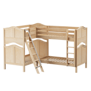 We combined two bunk beds to form an "L" shape that fits perfectly in a bedroom corner. Designed as a space-saving way to sleep four, it’s the perfect solution for a shared bedroom or vacation home. Easy-to-climb, solid wood ladders on each end for dual access points. Patented Rock Lock system keeps stacked beds super sturdy + secure.