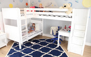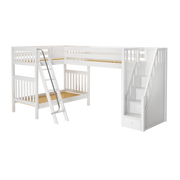 Maxtrix Twin High Corner Loft Bunk Bed with Ladder + Stairs - R
