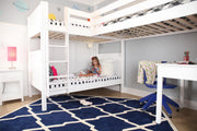 Customize based on your needs. Turn open space under the loft into a study nook, fill with storage, or leave free for playtime. You can even to sleep a 4th by adding a trundle bed to the lower bunk!