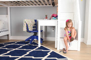 Staircase is safe for kids to climb up top and comfortable for parents as well. Each step has a deep drawer, providing built in storage to help keep your child’s room tidy. Access the top twin bed with ladder, designed with extra wide, grooved steps for easy climbing.