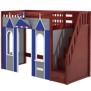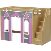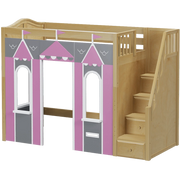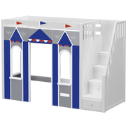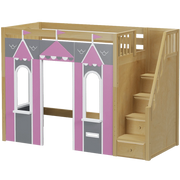 Maxtrix Twin High Loft Bed with Stairs + Playhouse Panels