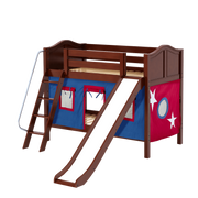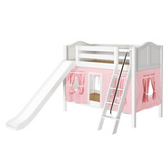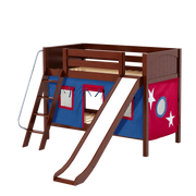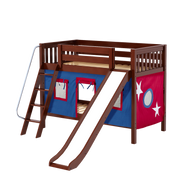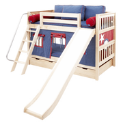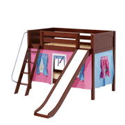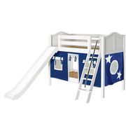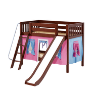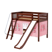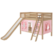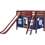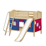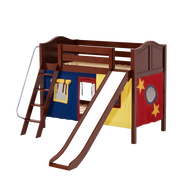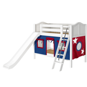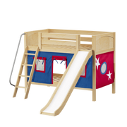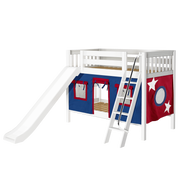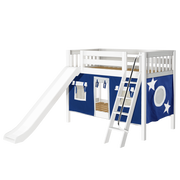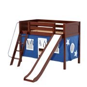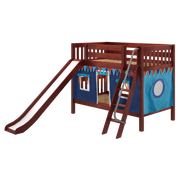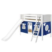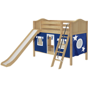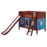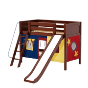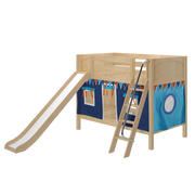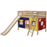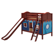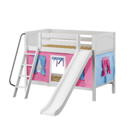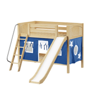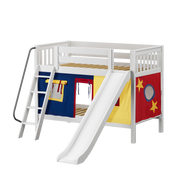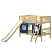 Maxtrix Twin Low Bunk Bed with Angled Ladder, Curtain + Slide