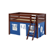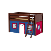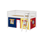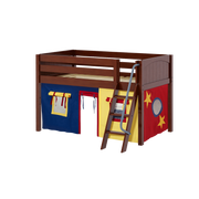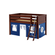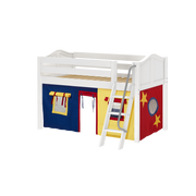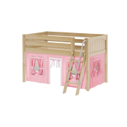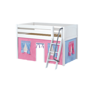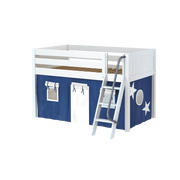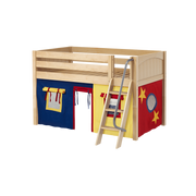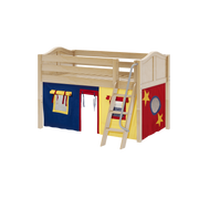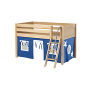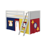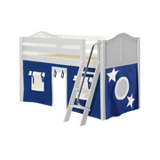 Maxtrix Twin Low Loft Bed with Angled Ladder + Curtain