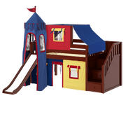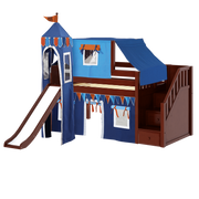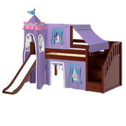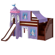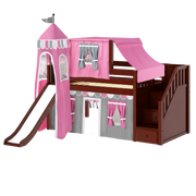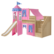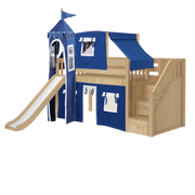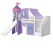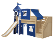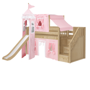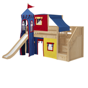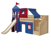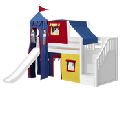 Maxtrix Twin Low Loft Bed with Stairs, Curtain, Top Tent, Tower + Slide