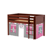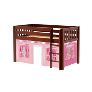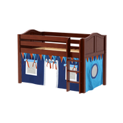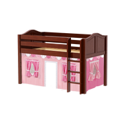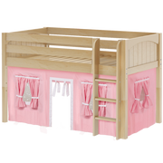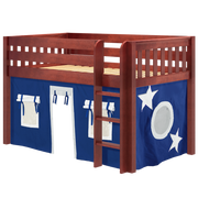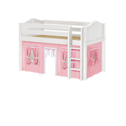 Inspire your child’s imagination with a playhouse loft bed! Only 50.75" tall, our best-selling twin low loft with colorful curtains is the perfect intro to a raised bed. Space for sleep, storage and play all one place makes this just the right combination of fun and function.