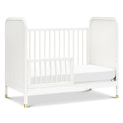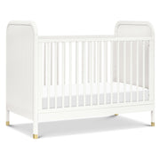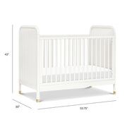 The Brimsley Tambour Crib is a masterpiece of craftsmanship that blends timeless design with modern functionality. Its distinctive tambour design and gently curved slats, paired with elegant gold feet, make this crib more than just a place for your little one to rest; it's a statement piece that elevates the aesthetic of your nursery.