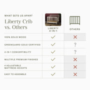 Liberty's fresh take on the antique spindle crib brings vintage elegance to the nursery. The classic silhouette is made bolder with a sturdy frame and thicker spindles. The versatile Liberty crib is the perfect centerpiece in any nursery.