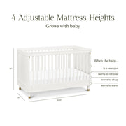 - GROWS WITH BABY: Our cribs have 4 adjustable mattress positions to help transition as your baby grows and develops from newborn to toddler. Easily lower the mattress position as your baby begins to sit, pull up, and stand.