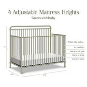 - GROWS WITH BABY: Our cribs have 4 adjustable mattress positions to help transition as your baby grows and develops from newborn to toddler. Easily lower the mattress position as your baby begins to sit, pull up, and stand.