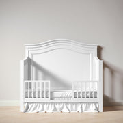 Serena is the instant classic, the design that grows on you. Arched headboard with subtle curves and perfect proportions, this 5 in 1 Convertible Crib transforms into a full size bed. Solid wood construction, finished with organic, non-toxic paints and stains.