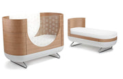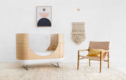 We broke the mold with the Ubabub by MDB Pod Crib (quite literally) when we decided to fuse futuristic design with hand-crafted manufacturing and finishing processes. Each Pod Crib is created by hand with naturally sourced materials including hygroscopic wood. Our finishing process allows the wood to breathe; slight expansion or contraction of the bent wood is natural as the curves of the Pod Crib react to the temperature and humidity of your home's environment. Don't worry if your crib doesn't align perfectly; just as the character of every child is expressed individually, the character of each Ubabub by MDB Pod Crib will develop over time.
