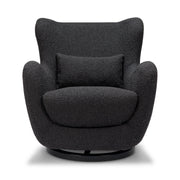 The Solstice Swivel Glider has a modern sculptural silhouette with a distinctive curved back and armrests. This glider boasts a one-of-a-kind slope design, creating a stunning visual element in any space. Crafted with precision and care, this glider is made with the finest materials. The rich boucle fabric is soft to the touch, inviting you to snuggle up with your little one. Add a touch of modern elegance to your home with the Nursery Works Solstice Swivel Glider.