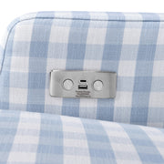 The Crewe Recliner blends form and function with its crisp, contemporary design and comfortable seat. Its smooth, back-and-forth gliding motion helps you rock your baby to sleep with ease, while the plush back cushion, electronic recline mechanism, and convenient swivel create an inviting repose for both you and your baby.