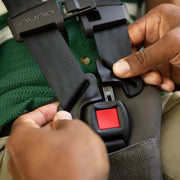 - 5-point no-rethread harness stows away when converting to booster