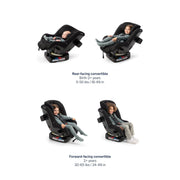 - Convertible car seat designed for longevity from birth to big kid easily adapting from rear to forward-facing modes