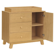 Meet the Hudson Modern 3-Drawer Dresser, your nursery’s new MVP. Updated with a fresh, streamlined design, this dresser keeps the same smart storage you love, with three roomy drawers and a side cabinet that’s perfect for stashing diapers, wipes, and extra onesies. Smooth-glide drawers make late-night changes a little easier, and the adjustable shelf inside keeps everything right where you need it. Finished with tonal wood knobs, hidden hardware, and an included anti-tip kit, it’s equal parts safe, functional, and seriously good-looking. Pair it with the Hudson 3-in-1 Convertible Crib for a nursery that’s effortlessly cool from day one.