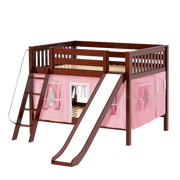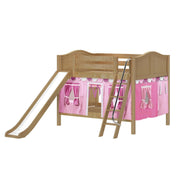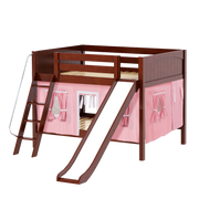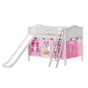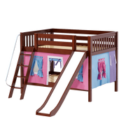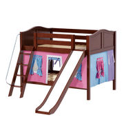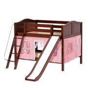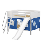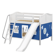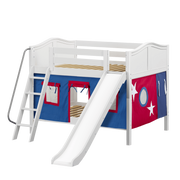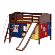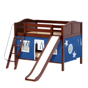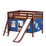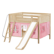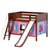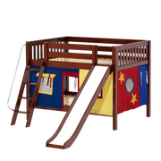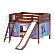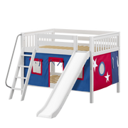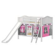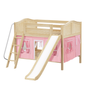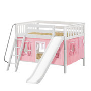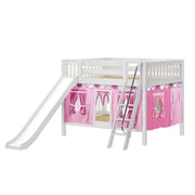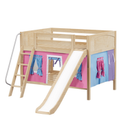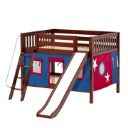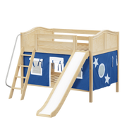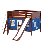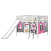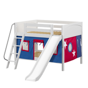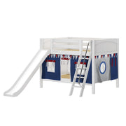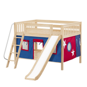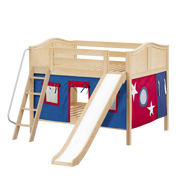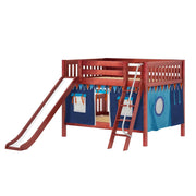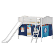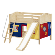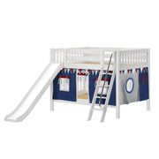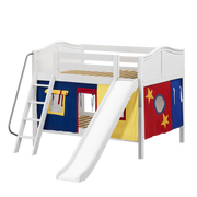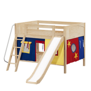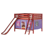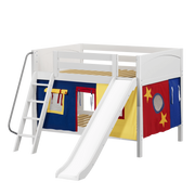 Maxtrix Full Low Bunk Bed with Angled Ladder, Curtain + Slide