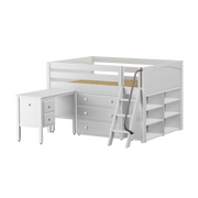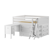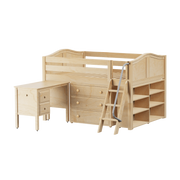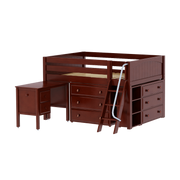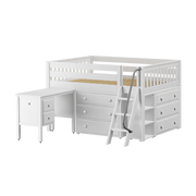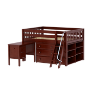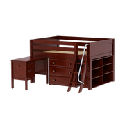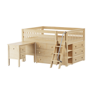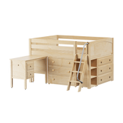 Maxtrix Full Low Loft Bed with Angled Ladder, Storage + Desk