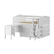 Our full-size low loft with angled ladder becomes the ultimate storage + study cube! Combine your choice of matching case goods all designed to fit perfectly. Desk pulls out easily when its time for homework, then slides back underneath. Each piece is freestanding so you can also use separately.