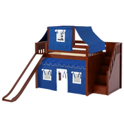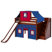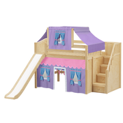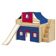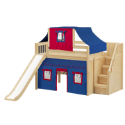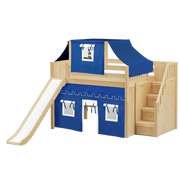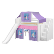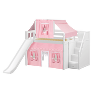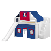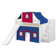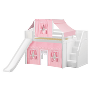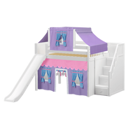 Maxtrix Full Mid Loft Bed with Stairs, Curtain, Top Tent + Slide