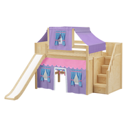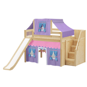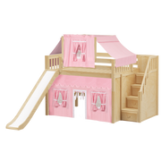 Raised high enough for ample underbed space, but still suitable for little ones and low ceilings, our popular full size mid loft with stairs works for all. Paired with a slide, colorful underbed curtains and matching top tent for tons of indoor fun!