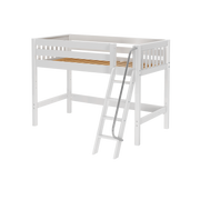 Raised high enough for ample underbed space, but still suitable for younger children and low ceilings, our popular twin mid loft bed with ladder works for all!