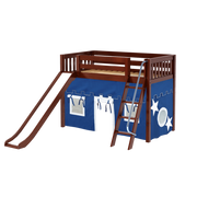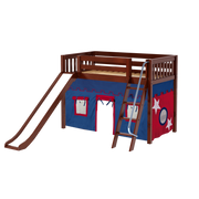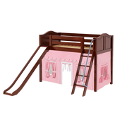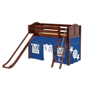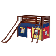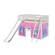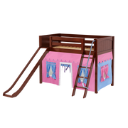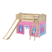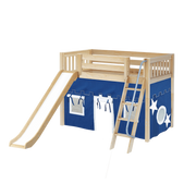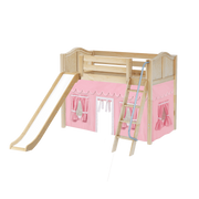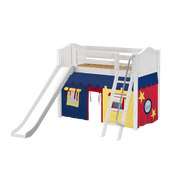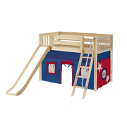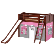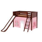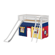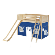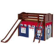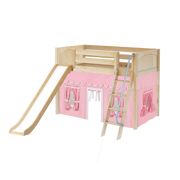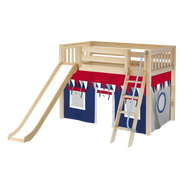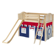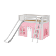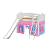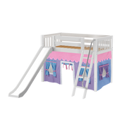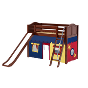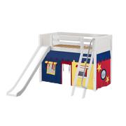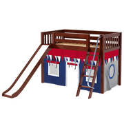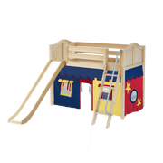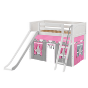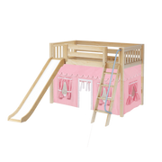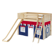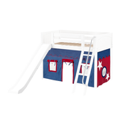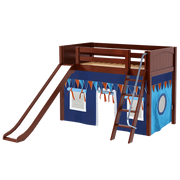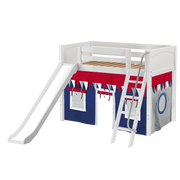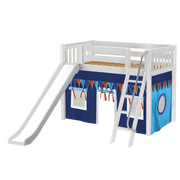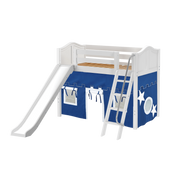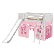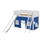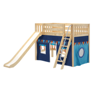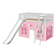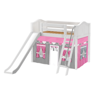 Maxtrix Twin Mid Loft Bed with Angled Ladder, Curtain + Slide