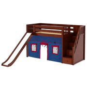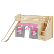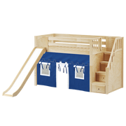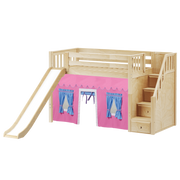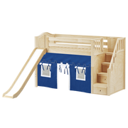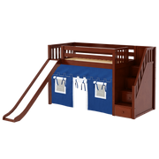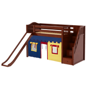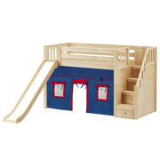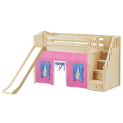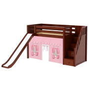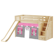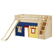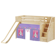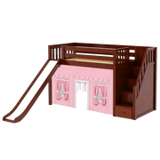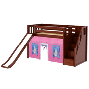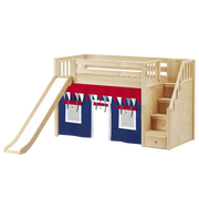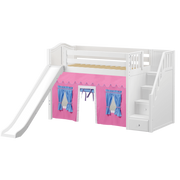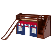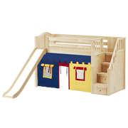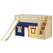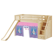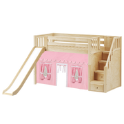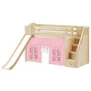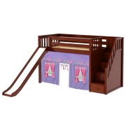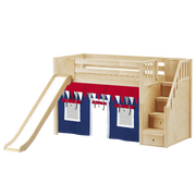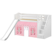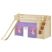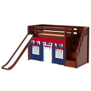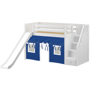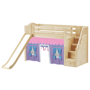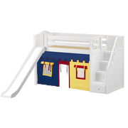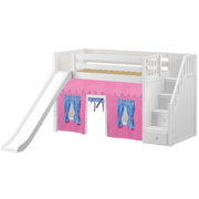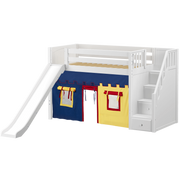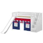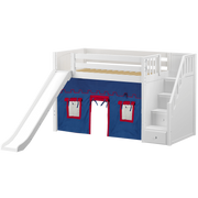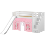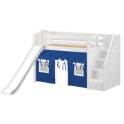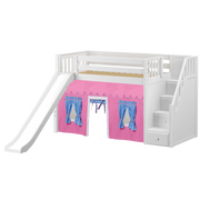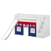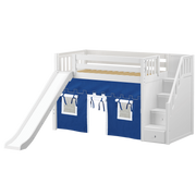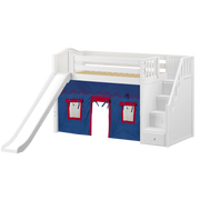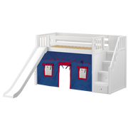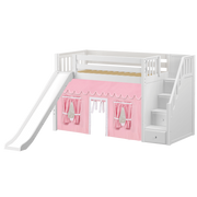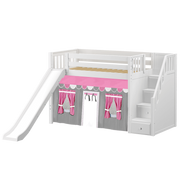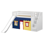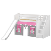Maxtrix Twin Mid Loft Bed with Stairs, Curtain + Slide