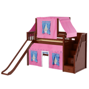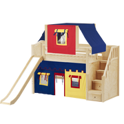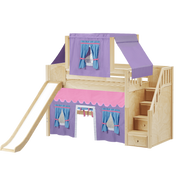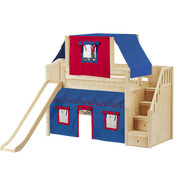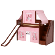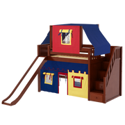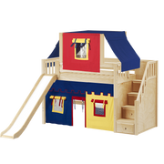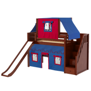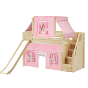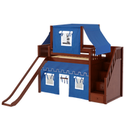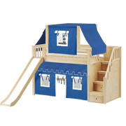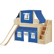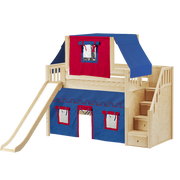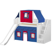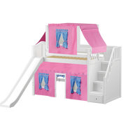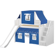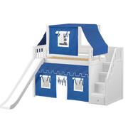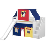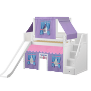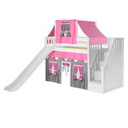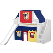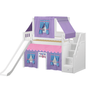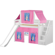 Maxtrix Twin Mid Loft Bed with Stairs, Curtain, Top Tent + Slide