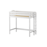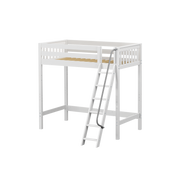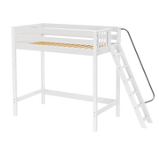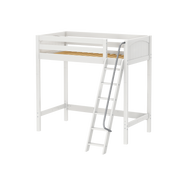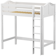 Take your bed all the way up with a twin ultra high loft! Tall loft bed = more free space underneath. Almost 5 ft of clearance, perfectly suited to fit desk or storage and accommodate growing children.