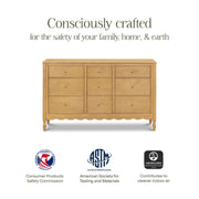 With its graceful curves and heirloom-inspired detailing, the Ambrosia 9-Drawer Dresser brings timeless elegance and generous storage to your nursery. The scalloped base and turned legs add a touch of romance, while nine spacious drawers keep everything beautifully organized from baby essentials to everyday favorites. Thoughtfully crafted to become a statement piece designed to grow with your home for years to come.