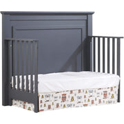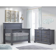 Classic style with contemporary accents of beveled tops and drawer front façades enhanced with Italian handles. The Taylor ‘’5 in 1’’ Convertible Crib features massive posts, chunky tops and a contemporary framed back panel, infusing a sense of safety and security. This solid wood collection is available in White with Italian pewter handles or in the Graphite color featuring antique bronze handles. It also has a myriad of pieces to choose from and offers long term value with five configurations: crib, toddler bed, daybed, double bed or double bed with low-profile footboard for easy transitions from baby, to toddler, to teen and will surely accompany your little one into his/her college years.