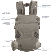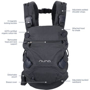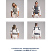 - Four carry positions provide ergonomic positioning as your child grows, for healthy spine and hip development: newborn mode, facing in, facing out, back carry