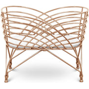 The Aura Bassinet is a modern interpretation of woven rattan furniture. Made of electro-plated, mold-formed, tubular steel, its rails curve and overlap to create Aura's graceful, enveloping shape. The Aura’s removable wheels with locking casters help keep your baby close during their first few months — no matter where in your home you are.