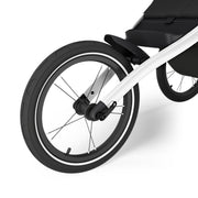 Thule Glide 3 is specifically made for running, thanks to its aerodynamic, lightweight design with large 18” rear wheels, fixed 16” front wheel, and room for your kick stride. You get speed with the fixed front wheel and feel safe knowing you can stop at any time with the integrated handbrake. Enjoy added space for long strides with the updated parking brake. Be confident knowing your child is comfortable with increased canopy coverage, enhanced ventilation, and a leg rest for longer runs. The new magnetic buckle ensures easy in and out, making safety a breeze.
