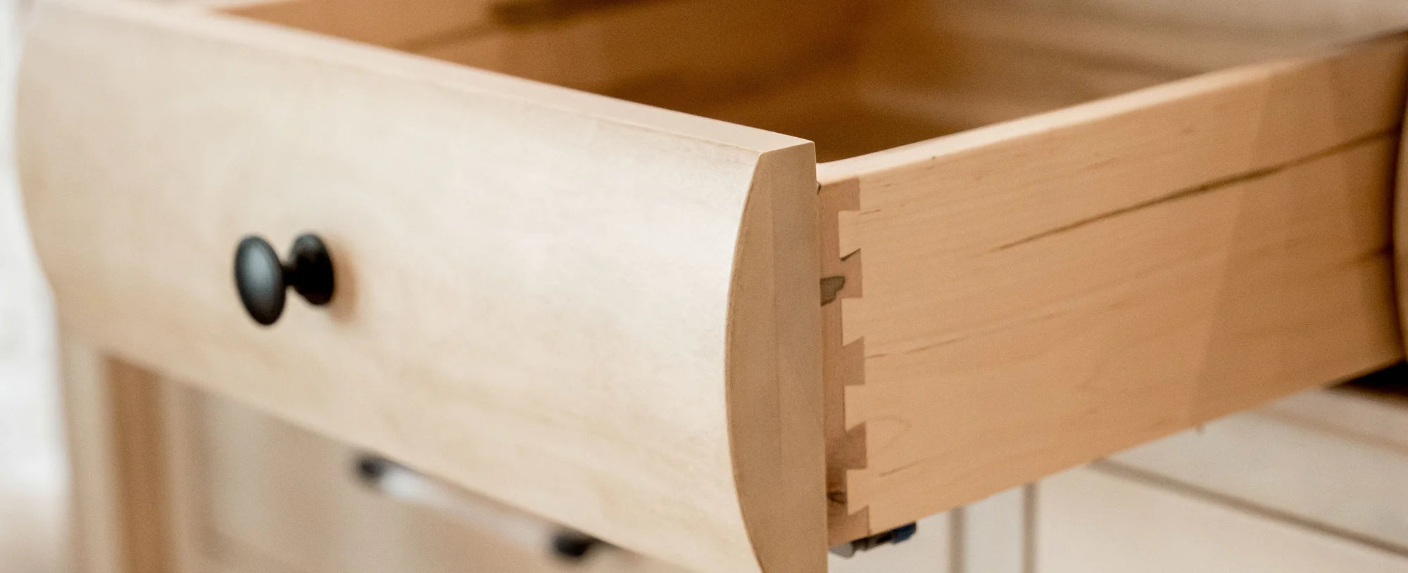 Furniture moves into our finishing shop in the white wood or raw wood stage, where it is inspected for any flaws. Once a piece has passed inspection, it is sanded, finished, inspected again, and blanket-wrapped for direct shipment to businesses and homes across the country. Milk Street Baby offers four species of hardwood and two tiers of finishes across a palette of sixteen colors. Each finish is priced according to its complexity. The wood species we offer include wormy maple, aspen, sap cherry, and brown maple. Other hardwoods are available and can be custom ordered.