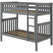 Classic slatted design made from solid, knot free Pine. Flush, color coordinated hardware creates a clean & modern look. Oversized steel hardware & safety cleat ensures solid connections. Pre-assembled components for fast & easy assembly. Each bed tested for 400lb to comfortably sleep kids or adults. Top/bottom slat rolls included - no bunkie board required. With tall 15" guardrails the bed safely accommodates standard size mattresses. Reversible ladder with wide grooved steps and rounded edges offer comfortable & safe climbing. Recommended for 8 feet ceiling height above. Bunks separate into 2 free-standing full beds. Meets or exceeds federal safety standards. Mattresses, Trundles, Storage Drawers & Vanity panels sold separately.