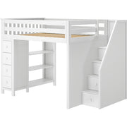 Your favorite sleep-storage solution. The Cheltenham Loft Bed allows you to organize all your favorite things effortlessly. With an included storage tower, each extra-long shelf creates the perfect place for your clothes, books, and bedding. This bed's raised loft design maximizes the space in your room. The slatted headboard and flush color-matched hardware create a modern look that goes great with any decor. Made with solid, knot-free New Zealand pine wood and strong metal-on-metal connections, this bed's frame offers amazing strength and support. The solid plywood slats and metal support bar create a high 400 lb. resting weight capacity per sleeping surface. Safety and security come standard with tall 15" guard rails. Climbing up is simple and easy thanks to a wide anti-slip staircase. Durable, non-toxic low VOC finishes make this bed the clean, healthy choice for your home. Combining superior quality with classic design, this Loft with Staircase + Storage is the perfect all-in-one choice for every room.